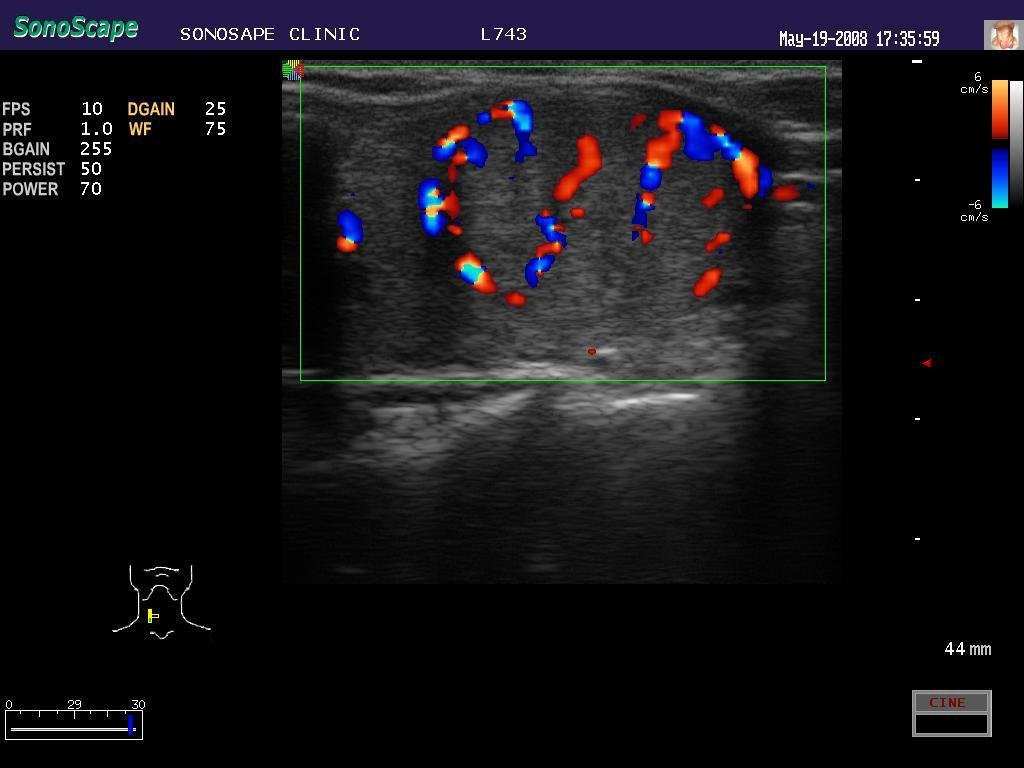 1) The linear – 192 elements. The frequency 4-18 MHz. The size of the head 38 mm.