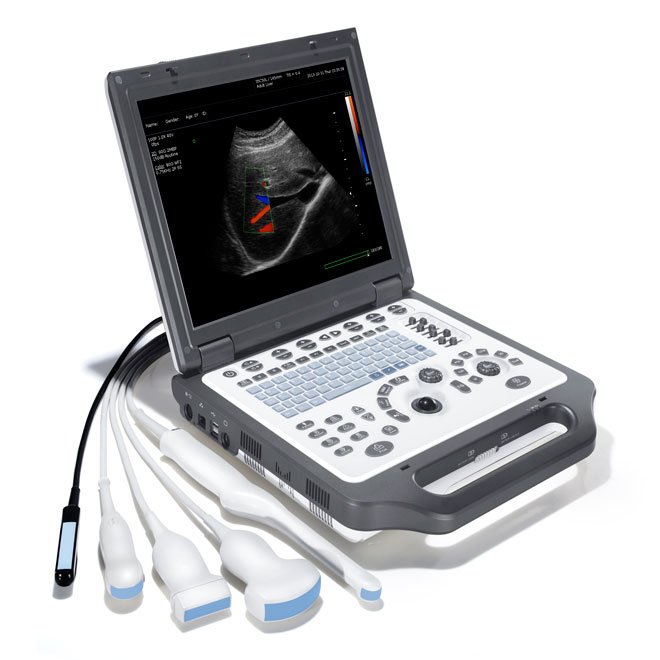 – Advanced Color Ultrasound Machine with a specialized cardiac probe