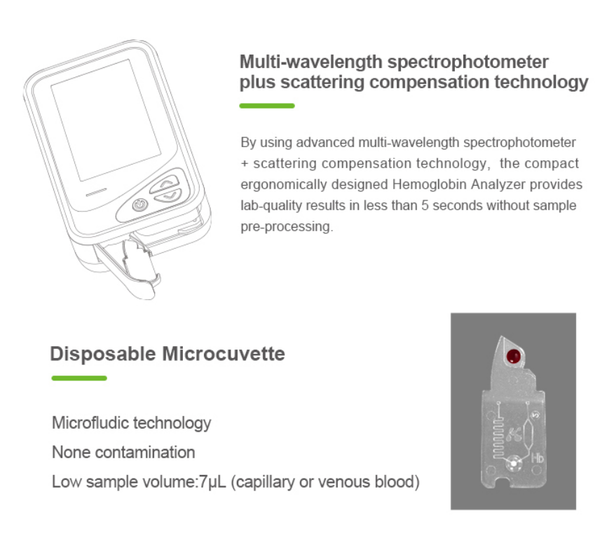 – Measurement range of 0-25.6 g/dL